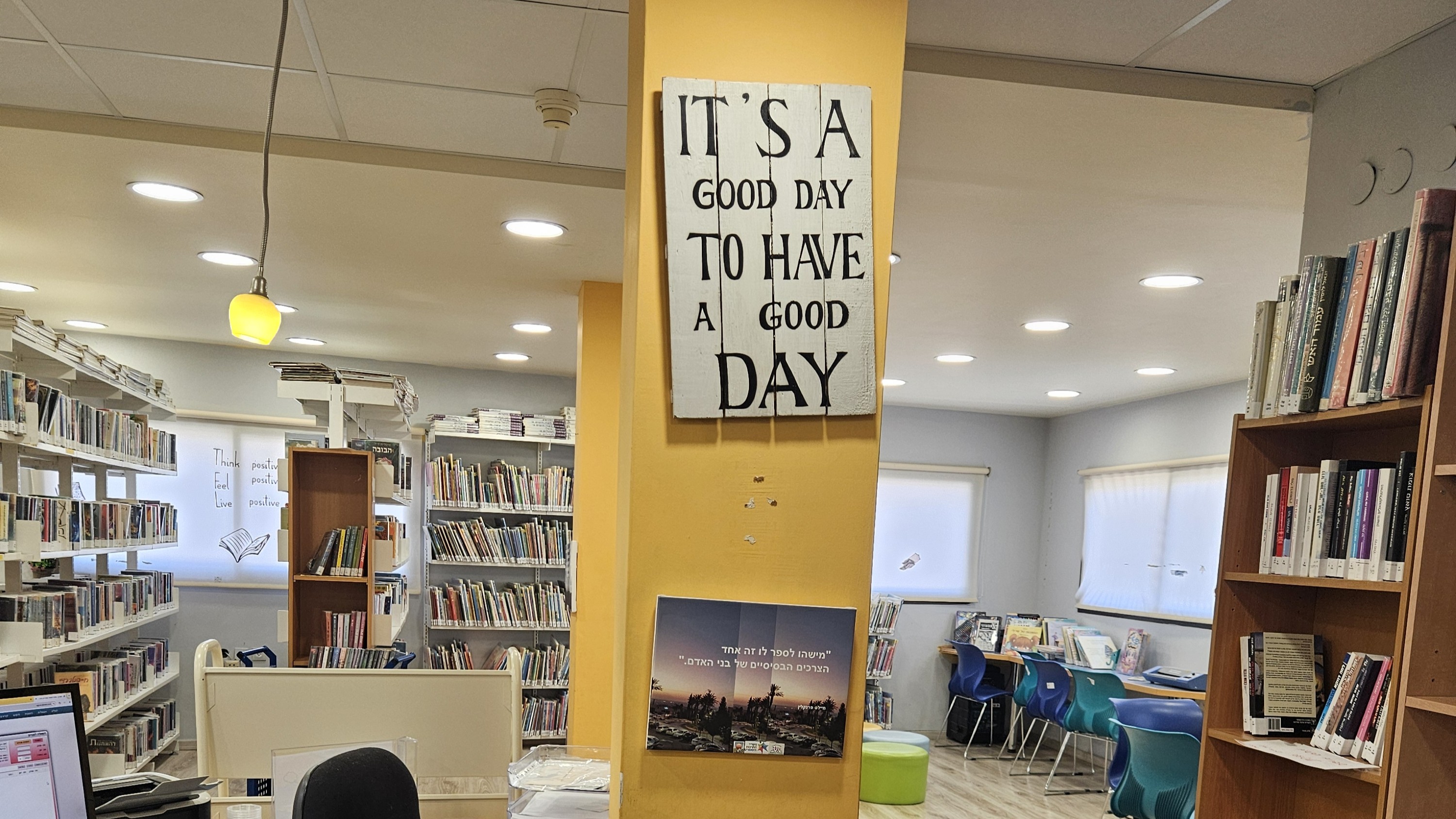 בספרייה שלנו תמצאו גישה פתוחה למידע, הזדמנויות לפיתוח והעשרה עצמית, כלים לעידוד קריאה לילדים ומבוגרים, תמיכה והתאמה לצרכי בתי הספר ולפיתוח לומדים עצמאיים וכמובן הצעות לבילוי ופנאי.